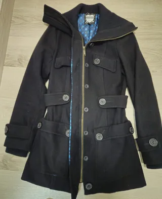 Abrigo de la marca Sfera en color negro. - Cierre de botones. - Bolsillos frontales con solapa. - Cuello alto. El color es azul oscuro