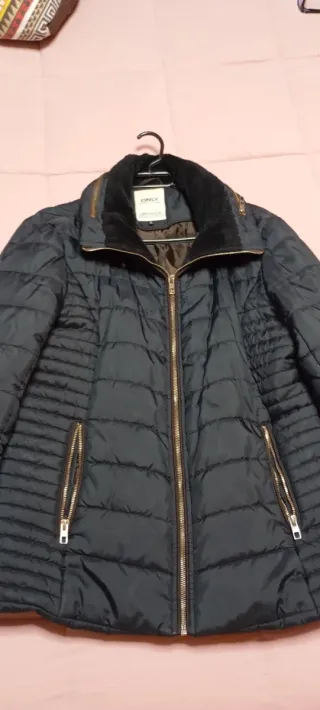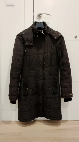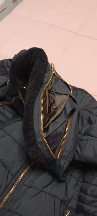Abrigo largo de invierno con capucha y forro interior de pelo. Da talla, como una 40. Puesto unas 5 veces, muy calentito e impermeable - Cierre de cremallera. - Bolsillos laterales. - Detalle de pelo en la capucha.