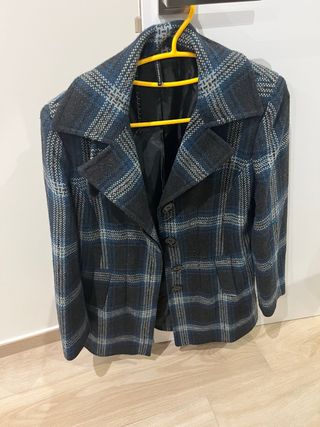 Abrigo Naf Naf cuadros azul y negro