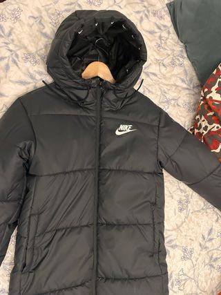 Parka larga de la marca Nike, ideal para protegerte del frío. Su diseño moderno y funcional la hace perfecta para el día a día. - Cierre frontal con cremallera. - Capucha integrada. - Bolsillos laterales con cremallera.