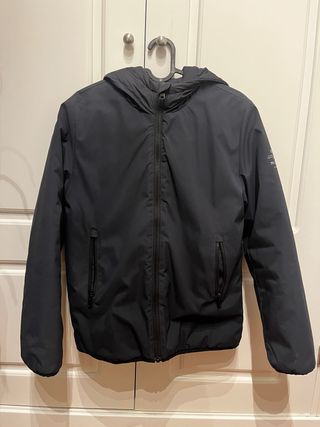 Abrigo talla 14 de la marca Ecoalf en color azul marino. Está en perfecto estado. Perfecto para mantener el calor. - Diseño con capucha. - Cierre de cremallera frontal. - Bolsillos laterales con cremallera.