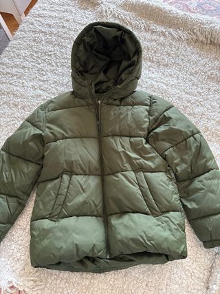 Abrigo acolchado con forro interior de borreguito y capucha. Talla 14-15 años / 166 cm. Muy calentito - Cierre de cremallera. - Bolsillos laterales. - Puños elásticos.