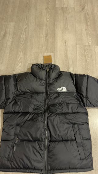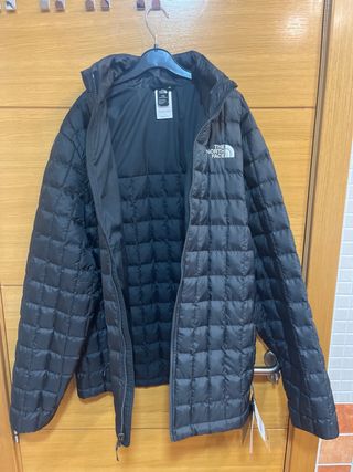 Cazadora The North Face negra, talla XL que equivale a una L. Es una prenda nueva con etiquetas. La medida entre las axilas son 59 cm. - Diseño acolchado. - Capucha integrada. - Cierre de cremallera frontal.