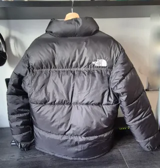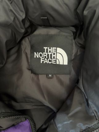 Chaqueta acolchada de cuero sintético con un diseño moderno y llamativo. - Cierre frontal con cremallera. - Bolsillos laterales con cremallera. - Cuello alto. - Logo de The North Face en el pecho. - Leve daño en el cuello. imperceptible