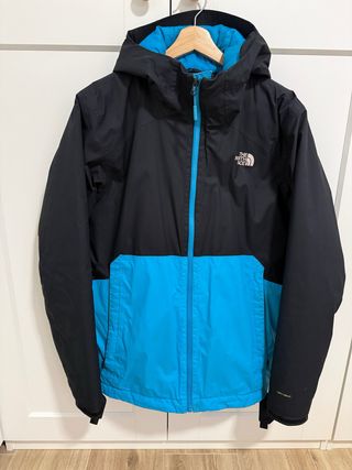 Abrigo the north face hyvent , en color azul. Impermeable cortavientos , tipo plumas . Talla L , yo uso M y me queda anchito. Con capucha que se puede guardar. Muy poco uso , está como nuevo. Tiene una pequeña rozadura en la manga casi imperceptible como se puede ver en la última foto.