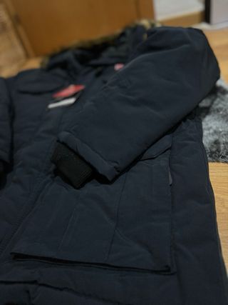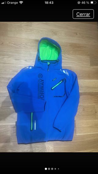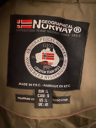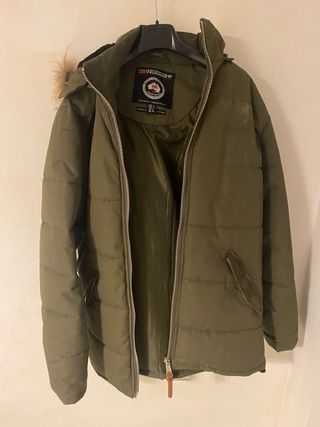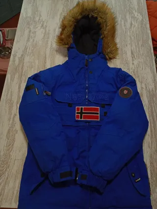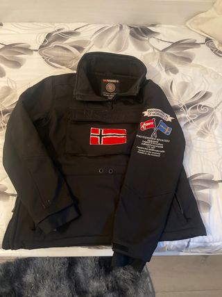 Chaqueta de la marca Geographical Norway. - Capucha con pelo sintético. - Bolsillo frontal grande. - Bandera de Noruega en el pecho. - 2 veces contadas de uso. - En perfecto estado. - Preferiblemente venta en persona. - Precio no negociable.