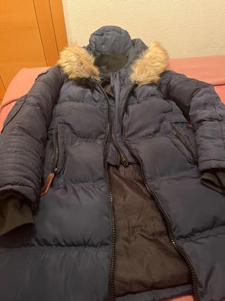 Su precio fueron 350€ Está completamente nueva Me quedo pequeña y voy a comprar una talla más grande. Parka de la marca Norway en color azul marino, con capucha y detalles de pelo. - Cierre de cremallera. - Bolsillos laterales. - Puños ajustados.