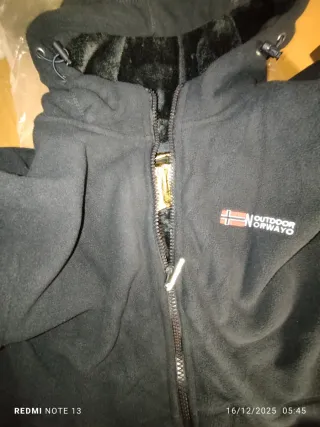 Abrigo de nieve con un diseño llamativo y detalles únicos.Vale como para talla S y M - Capucha con pelo. - Bolsillo frontal con la bandera de Noruega. - Cierre de cremallera. - Cordones ajustables en la cintura.