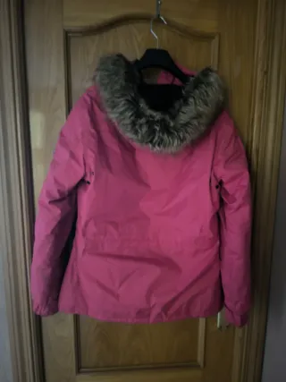 Abrigo de la marca Norway en color morado. Puesto 2/3 veces. - Diseño con capucha y pelo. - Bolsillo frontal grande. - Detalles de cremalleras en mangas y bolsillos.