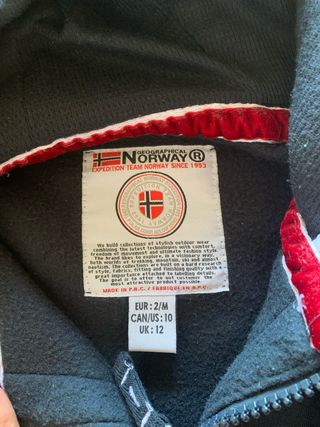 Chaqueta Geographical Norway de color negro. - Diseño con detalles de GEO-NORW y TREKING. - Insignia Expedition en la manga. - Bandera de Noruega en la manga derecha. - Puños y cuello con detalles de rayas.