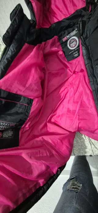 Abrigo de Geographical Norway - Capucha forrada en color rosa. - Cremallera frontal visible en rosa. - Bolsillos laterales con cremallera. - Detalle de logo en relieve en el pecho. - Mangas acolchadas. -Nieve 3 veces de uso, nueva 259€