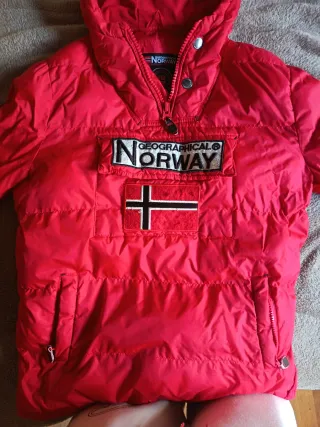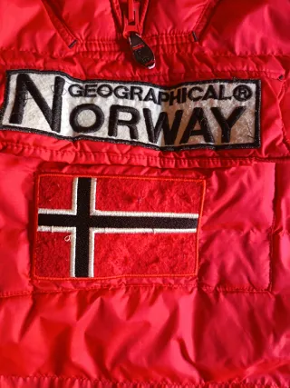 Chaqueta Geographical Norway de color rojo. Está en buen estado. Se ha usado tres o cuatro veces. Está como nueva. LA TALLA ES EUR 14Y (Para niño de 14-15 años) - Tiene capucha. - Cremalleras funcionales. - Bolsillos funcionales.