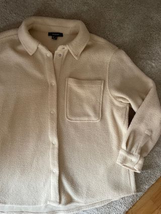 Sobrecamisa oversize de tejido efecto borreguito, ideal para un look cómodo y a la moda. Vendo porque no lo uso. - Diseño con cuello camisero. - Cierre de botones. - Bolsillo en el pecho. - Mangas largas. - Oversize XL