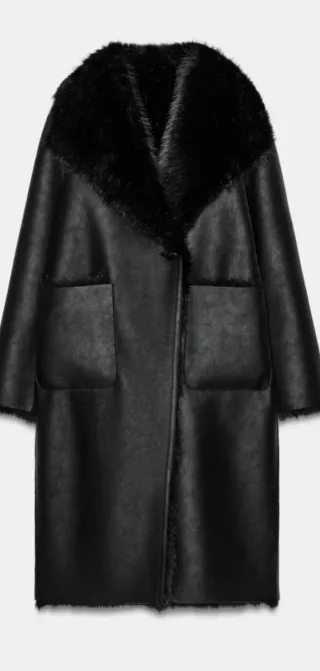 Abrigo viral de Zara, reversible y muy buscado. Pelo sintético. Talla oversize. Nuevo con etiquetas. - Diseño elegante y moderno. - Acabado suave y confortable. - Bolsillos frontales prácticos.