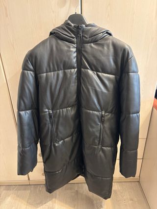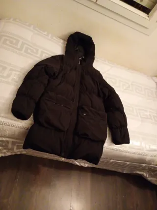 Abrigo largo Jordan talla S oversized acolchada de estilo moderno, perfecta para mantenerte abrigado. - Diseño con capucha. - Cierre frontal. - Bolsillos laterales.