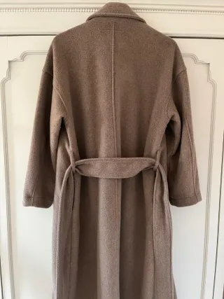 Elegante abrigo de Massimo Dutti en color beige. Lana 100%, oversize fit. Da una sofiisicada, la gente siempre piensa q es de cachemira. - Diseño envolvente con cinturón. - Corte moderno y favorecedor. - Tejido de alta calidad.
