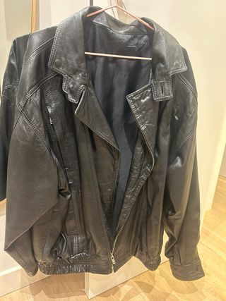 Chaqueta Cuero Oversize Negro Talla L Unisex Mujer