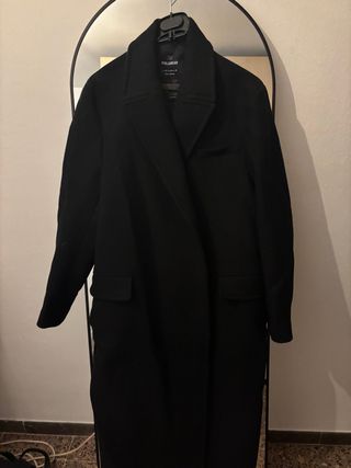 Abrigo largo de lana de Zara. - Diseño elegante y atemporal. - Cierre de botones. - Cuello con solapas. - Bolsillos laterales.