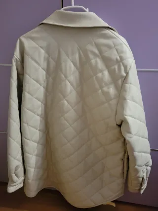Bomber acolchada oversize, ideal para un look moderno. Es una prenda nueva, sin estrenar. Al ser oversize podría valer para más talla. Su precio fue de 65 euros. - Diseño acolchado con rombos. - Cremallera frontal. - Puños y bajo elásticos. - Bolsillo con cremallera en manga.