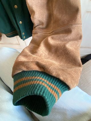 Abrigo estilo universitario americano oversize y unisex. Preciosa y con mucha textura. Es talla M pero es muy grandota.