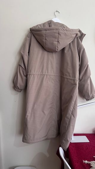 Abrigo largo de estilo casual, perfecto para el día a día. Su diseño moderno y cómodo lo hace ideal para cualquier ocasión. Oversize. - Capucha integrada. - Cintura ajustable con cordón. - Mangas largas abullonadas. - SUPER CALENTITO