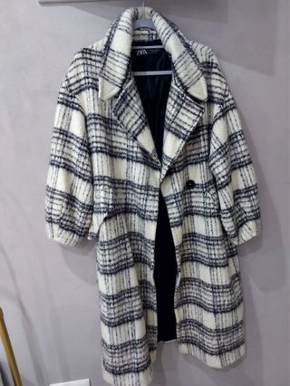 🇪🇸 Descripción en español Abrigo largo de Zara, talla XS, pero con corte oversize, por lo que da más talla (sirve también para S o incluso M). De cuadros en tonos neutros, con 21% de lana, lo que lo hace cálido y de buena calidad. Estilo moderno y versátil, perfecto para looks casuales o más arreglados. En excelente estado. Tiene un pequeño agujero en un bolsillo (adjunto foto). Usado una vez. #Zara #abrigo #abrigolargo #oversize #cuadros #modamujer #winterstyle #streetstyle #fashion #VintedES #lana #abrigozara #abrigofiesta #paño