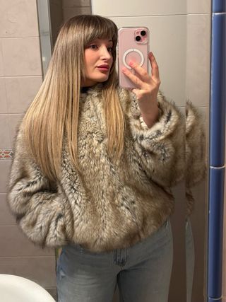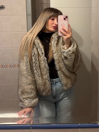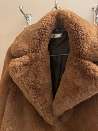 Abrigo de pelo sintético con un diseño moderno y cálido. - Material suave y agradable al tacto. - Corte oversize. - Cierre de corchetes. Se recoge en mano en zona Retiro