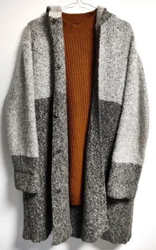 Abrigo de punto Mango Casual, talla M. Tipo cardigan largo / abrigo ligero, muy cómodo y versátil. ✔ Tejido grueso y cálido - ideal para otoño, invierno suave y primavera ✔ Con capucha amplia ✔ Estilo oversize moderno ✔ Colores neutros gris / blanco - combina con todo ✔ Perfecto para uso diario, trabajo, paseos, viajes ✔ Estado muy bueno Se puede llevar abierto como chaqueta o como abrigo ligero. 📏 Talla M (si quieres, luego можем добавить замеры). Entrega por Wallapop Envíos o mano a mano.