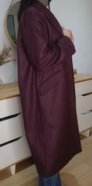 Abrigo largo oversize burdeos Zara Talla L