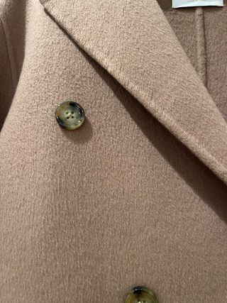 Abrigo de la marca Roberto Verino, decesta temporada. Comprado en su tienda en Diciembre de 2025. Está sin estrenar. No pude devolverlo porque le corté la etiqueta. La talla es S, que en este caso equivale a una 38. El precio actual en la web de la marca es de 495 Euros. - Color marrón caramelo - Diseño oversize - Cierre de doble botonadura.