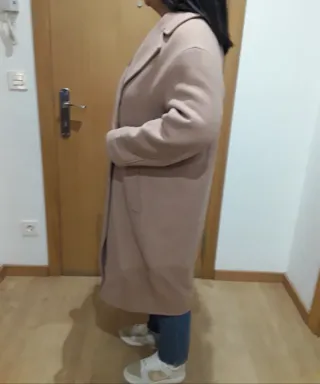 Oversize largo de paño, está perfecto para cualquier ocasión. - Poquísimo uso está perfecto. - Diseño cruzado con dos botones, cruzado. - Bolsillos laterales. - Cuello solapa. - recoger en Zaragoza.