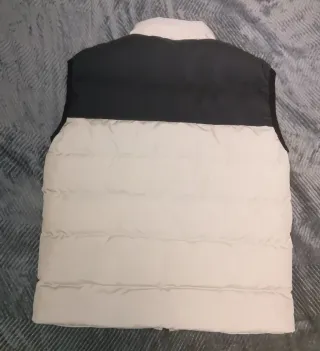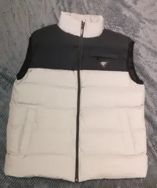 Chaleco acolchado de Prada con diseño bicolor. - Parte superior en negro. - Parte inferior en beige. - Cuello alto. - Bolsillo en el pecho con logo metálico Prada triangular. - Aunque es talla XL da una talla L española. - Acepto ofertas razonables.