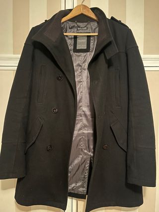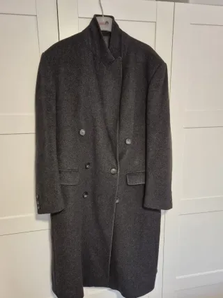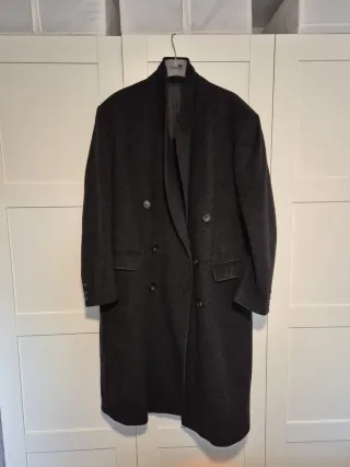 Abrigo en perfecto estado. Talla 46 pero es más una 42/44. Medida de sisa 58 cm. y largo 89 cm. De hombro a hombro 46 cm. La etiqueta de composición y lavado está cortada. 30% lana, 48% acrílico y 22% poliéster. Se hacen envíos y se puede entregar en persona en Alcorcón, Getafe, Valmojado y Jarandilla de la Vera.