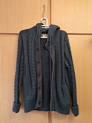 Chaqueta de punto con un diseño moderno y cómodo. - Tejido de punto con trenzas. - Cierre de cremallera y botones. - Capucha ajustable con cordones. - Bolsillos laterales.