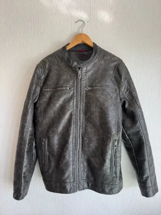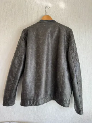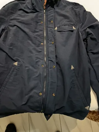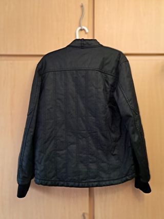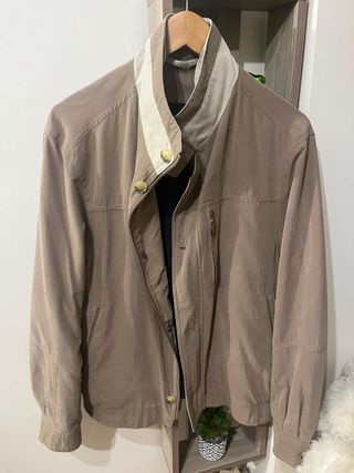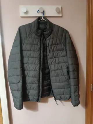 Cazadora de hombre con un diseño moderno y versátil. Con detalles como se ve en las fotos con muy buen estado general. - Cuello redondo. - Cierre de cremallera. - Bolsillos frontales con cremallera. - Detalle acolchado en hombros y mangas.