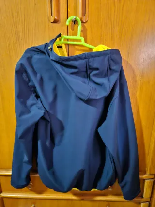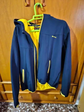 Chaqueta de montaña con un diseño en azul y amarillo. - Cierre de cremallera. - Bolsillos laterales con cremallera. - Capucha integrada. - Detalle de ribetes en contraste.