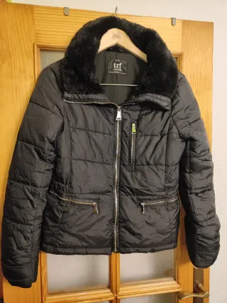 Chaqueta acolchada con cuello de pelo sintético. Medidas: 59cm de largo, 45xm de cintura 44cm de hombro a hombro y 49cm de axila a axila. - Cierre de cremallera. - Bolsillos frontales con cremallera. - Puños elásticos.