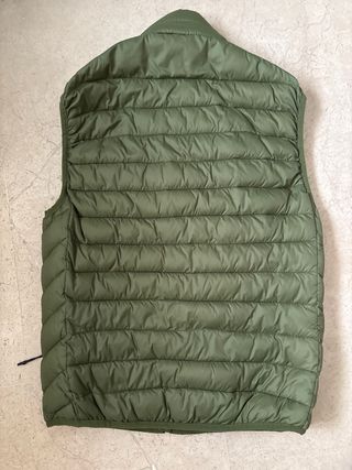 Chaleco acolchado de color verde, ideal para añadir una capa extra de abrigo. - Diseño sin mangas. - Cierre frontal con cremallera. - Bolsillos laterales con cremallera y cordón ajustable.