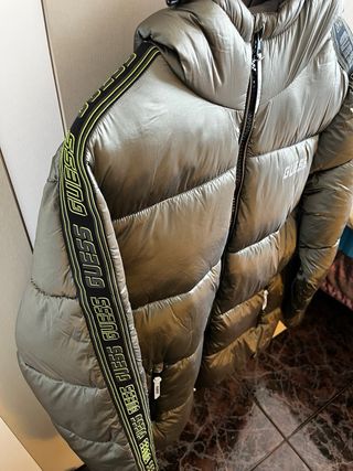 Chaqueta acolchada Guess para hombre con un acabado brillante. - Diseño con capucha. - Cinta con logo Guess en las mangas. - Cremallera frontal.