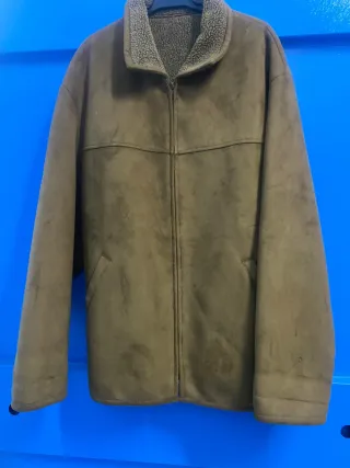 Cazadora de hombre con un diseño moderno y cálido. medidas; Hombro. 59cm Sisa. 64 cm Largo 73cm Largo manga 62cm - Exterior de ante sintético. - Interior forrado de borreguito. - Cierre de cremallera. - Cuello estilo camisero. Un defecto en la manga. Ver fotos