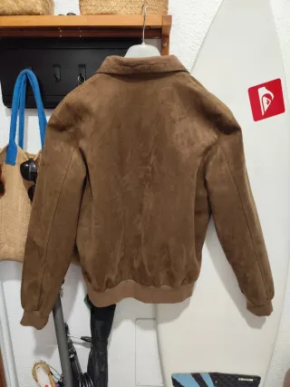 Cazadora de ante en color marrón. Un básico para cualquier armario. Ahora se lleva muchísimo. - Material: Ante - Cierre de cremallera frontal - Bolsillo con cremallera en el pecho - Puños y bajo elásticos *PRECIO NO NEGOCIABLE*