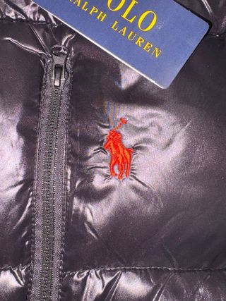 Chaqueta acolchada de la marca Polo Ralph Lauren en color negro. Presenta un diseño moderno y cálido, ideal para el frío. - Logo de la marca bordado en rojo en el pecho. - Cierre frontal con cremallera. - Capucha integrada. - Bolsillos laterales con cremallera.
