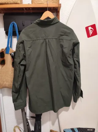 Sobrecamisa de la marca Zara en color verde militar. Es una prenda versátil y cómoda. - Dos bolsillos frontales con botón. - Cierre de botones. - Cuello camisero. *PRECIO NO NEGOCIABLE*