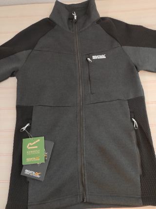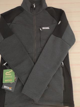 Chaqueta polar de la marca inglesa Regatta, ideal para actividades al aire libre. - Color gris. - Talla S británica (equivalente a 48 EU). - Cierre completo con cremallera. - Bolsillos frontales con cremallera. - Bolsillo napoleón en el pecho con cremallera. - Tiradores para guantes en todas las cremalleras. - Paneles texturizados en hombros y costados. - Corte entallado. - Nueva, a estrenar, con etiquetas.