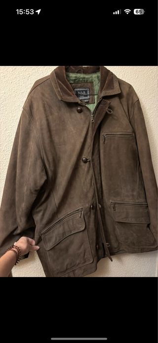 Con doble forro y cremalleras, interior acolchado y bastantes bolsillos, talla L, bien cuidada.