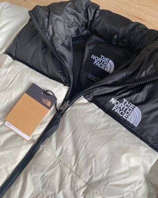 Cazadora de la marca The North Face con un diseño bicolor. - Parte superior en color negro. - Parte inferior en color beige. - Cuello alto.