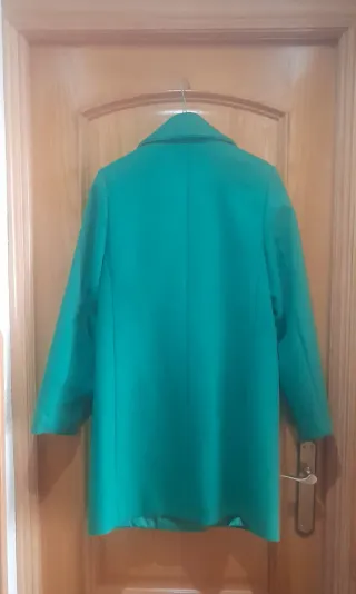 Abrigo de paño de Stradivarius en color verde. - Diseño de doble botonadura. - Cuello solapa. - Bolsillos frontales. Largo 84cm, sisa 80 cm, bajon82 cm y hombros 18 cm