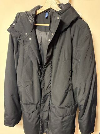 Abrigo de hombre con capucha, ideal para el frío. - Cierre de cremallera. - Dos bolsillos superiores con solapa y botón. - Dos bolsillos laterales con cremallera. - Puños ajustables. - Recogida en Badalona no me desplazo