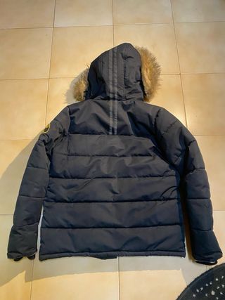 Abrigo plumón Superdry Usada 2 veces Edición especial Snow Capucha desmontable y pelo desmontable Puños acanalados Relleno de plumas Talla XS (34-36)