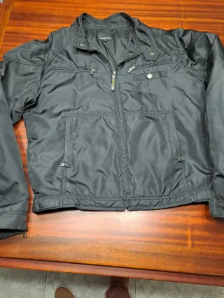 Chaqueta ligera con capucha para hombre talla S. Nueva a estrenar. - Cierre de cremallera frontal. - Bolsillos laterales con botón. - Puños y bajo elásticos. - Detalle reflectante en el bajo.